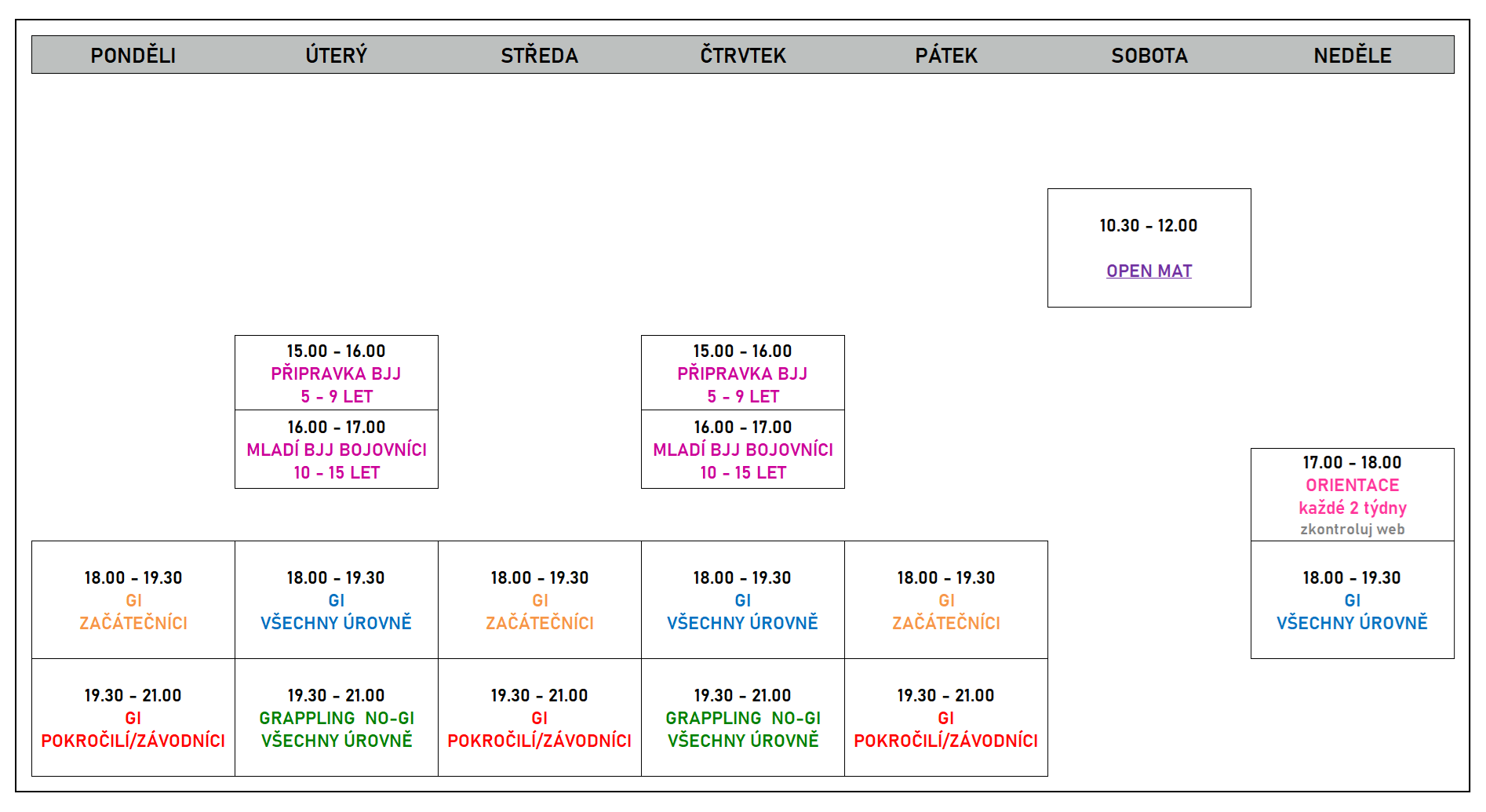 Pokud nemáte zkušenosti s BJJ, registrujte se a přijďte na orientační hodinu: neděle 15.3 v 17:00.
